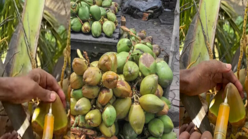 కాస్త ఖరీదు ఎక్కువనిపించినా కొబ్బరి నీళ్లు ఆరోగ్యానికి చాలా మంచివి. ఇందులో కార్బోహైడ్రేట్లు, ముఖ్యమైన పోషకాలతో సహజంగా లభించే కొబ్బరి బోండాలు చాలా ఉత్తమం. ఇంకా మెగ్నీషియం, కాల్షియం, ఫాస్పరస్ పోషకాలు పుష్కలంగా వీటిల్లో లభిస్తాయి. కానీ, కొందరు కంత్రీగాళ్లు కొబ్బరి బోండాలను కూడా కల్తీ చేస్తున్నారు. కొబ్బరికాయలను పెద్దవిగా, బరువుగా చేయడానికి రసాయనాలను ఇంజెక్ట్ చేస్తున్నారని చూపించే వీడియో ఒకటి నెట్టింట వైరల్ అవుతోంది.