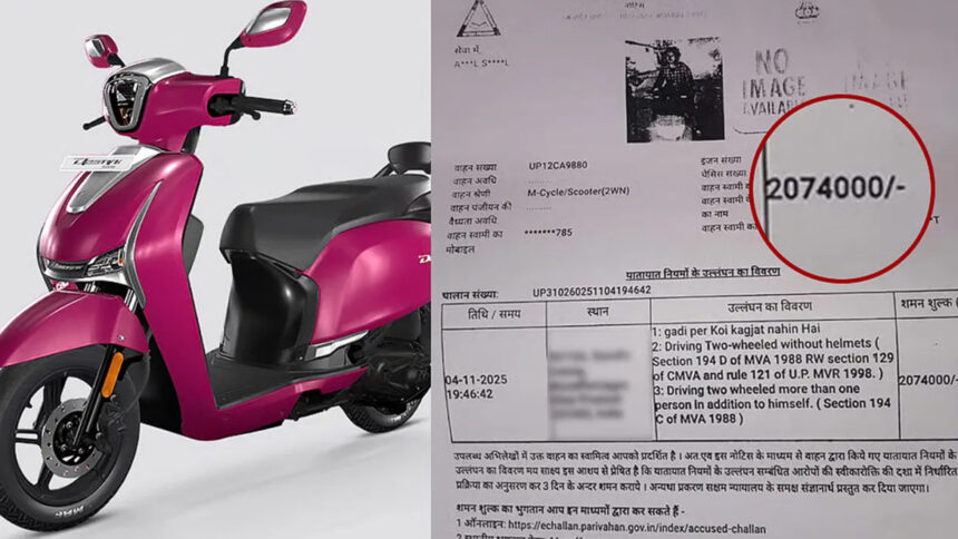 అయితే ఈ సంఘటన నవంబర్ 4న నాయి మండి పోలీస్ స్టేషన్ పరిధిలోని గాంధీ కాలనీ చెక్‌పాయింట్ వద్ద జరిగింది. స్కూటర్ రైడర్ అన్మోల్ సింఘాల్‌కు హెల్మెట్ పెట్టుకొని కారణంగా, సరైన డ్రైవింగ్ లైసెన్స్ చూపించనందు వల్ల ఫస్ట్ చలానా పడింది. ఇక అది కాస్తా రూ. 20.74 లక్షల చలానా అని తన నెంబర్‌కు మెసేజ్ వచ్చింది. ఇక ఆ చలానా విధించడమే కాదు.. స్కూటర్‌ను సైతం స్వాధీనం చేసుకున్నారు ట్రాఫిక్ పోలీసులు.